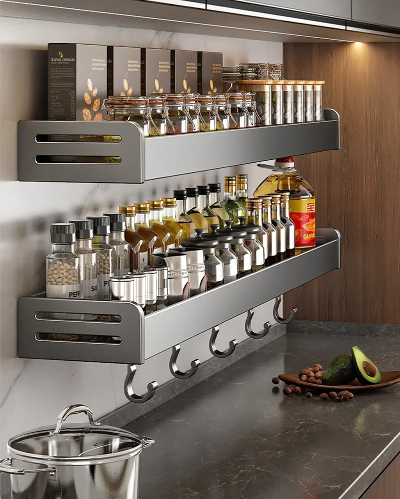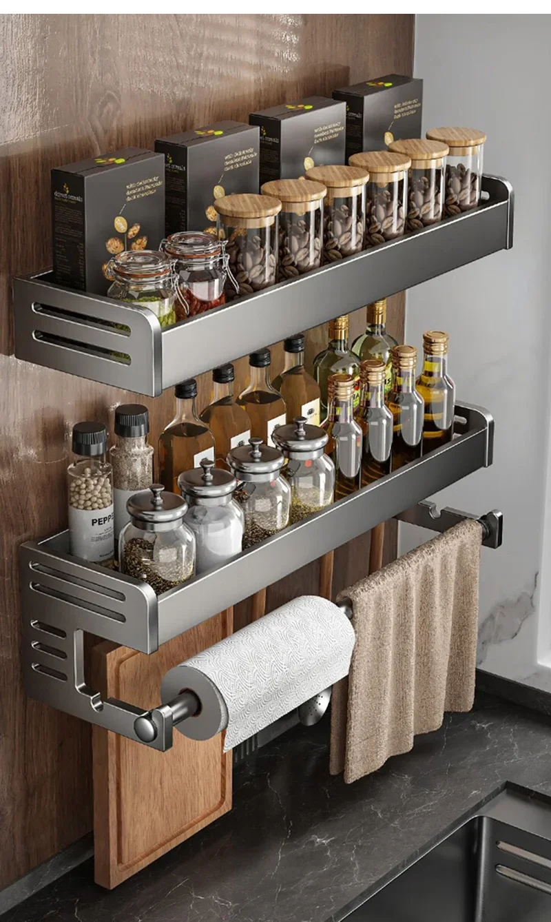 1. Made of high quality space aluminum material, which is more resistant to corrosion and scratches,resist oxidation,ensuring that the shelves maintain a brand new appearance for a long time.