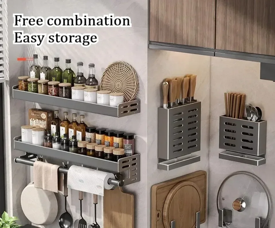 Wall Mounted Kitchen Storage Rack Multifunctional Waterproof Knife Holder Seasoning Simple Storage Rack Seasoning Storage Rack